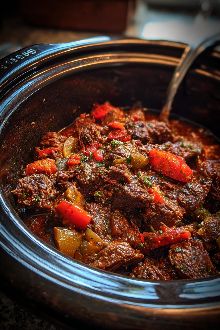 - Bell peppers → Zucchini or mushrooms: Adds a similar texture but with earthy flavors. Add zucchini last hour to avoid mush.