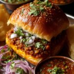 Oh, the joy of serving Pav Bhaji just right! Here’s how we do it Mumbai street-style in my house: First, an extra knob of butter melting into that hot bhaji – because why stop at just what’s in the pan? Then, a side of finely chopped raw red onions for that perfect crunch and bite. And don’t forget those lemon wedges – that bright squeeze at the end makes all the flavors pop. Sometimes I’ll even add a little bowl of spicy green chutney for dipping. Now grab those butter-toasted pav and dive in – hands only, the way it’s meant to be eaten!